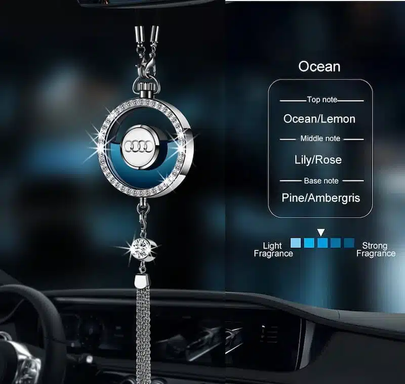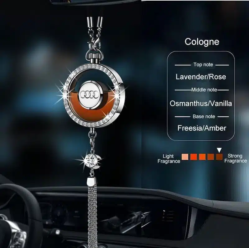 3. Fashion Design: The classic Audi logo is paired with sparkling diamonds, which is luxurious and fashionable, and it matches your Audi very well. There are fashionable tassels at the bottom, which brings dynamic and fashion when the vehicle is moving. It can decorate the car and refresh the air.